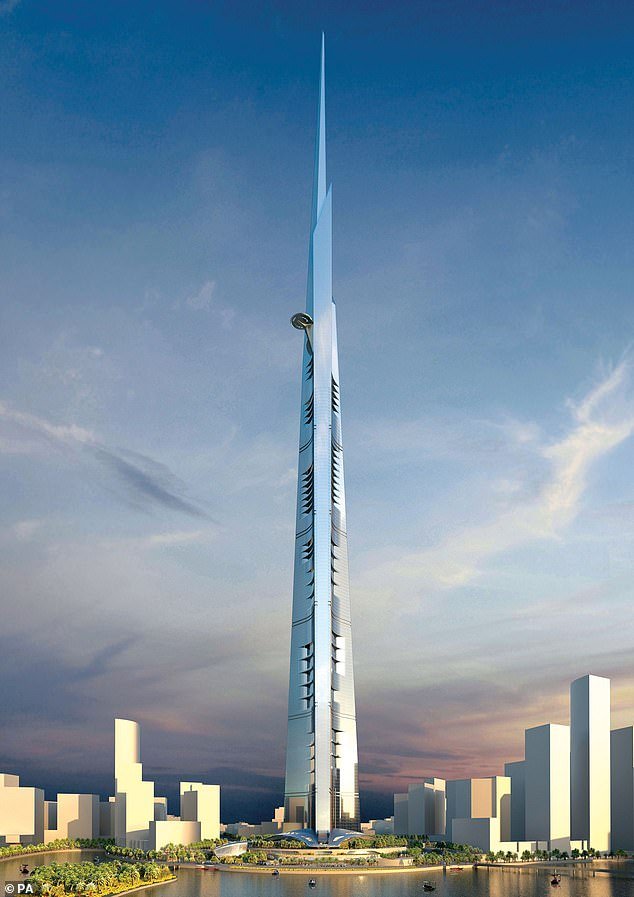 A Arábia Saudita está atualmente desenvolvendo a Jeddah Tower, projetada para ser o primeiro edifício a ultrapassar um quilômetro de altura, atingindo uma altura de 3.281 pés (1.000 metros) (Imagem: Impressão artística)