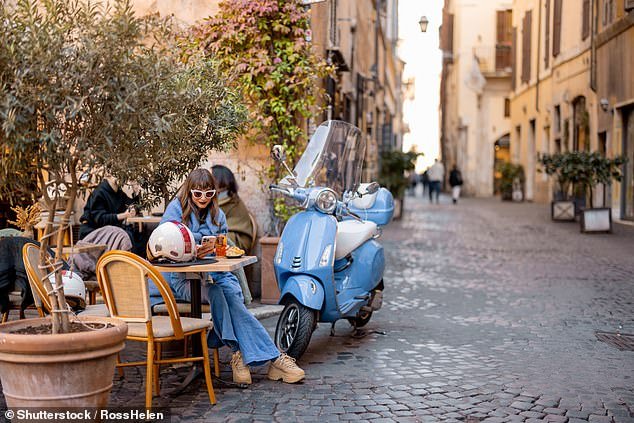 Regina, seu marido Dan Simmons, 46, e suas duas filhas adolescentes ficaram ‘impressionadas’ com o enorme zodíaco dos turistas. A família parou em um hotel em Soranto e visitou Positano para uma visita de um dia.