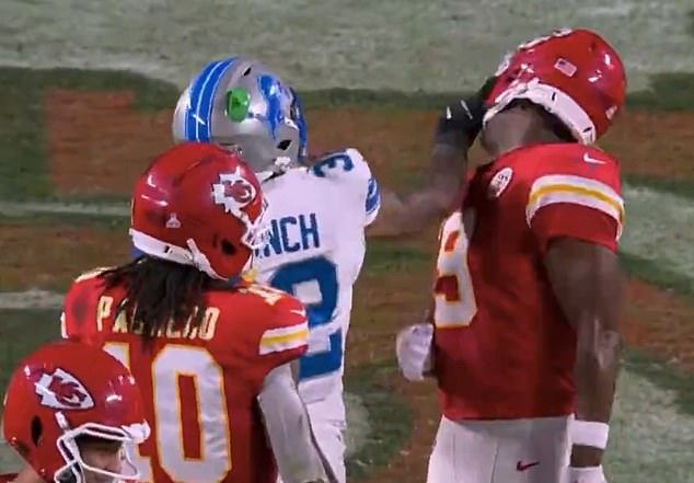 Branch dá um soco no wide receiver do Chiefs, JuJu Smith-Schuster, após ser ignorado Patrick Mahomes‘ Tentando apertar sua mão no final da derrota por 30-17 no Arrowhead Stadium.