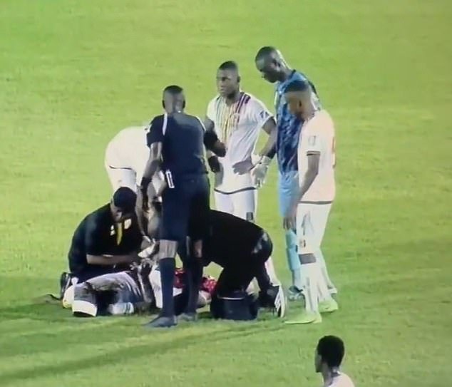 O meio-campista foi contratado aos 67 minutos, com o Mali vencendo por 3 a 0, mas caiu no chão e se contorceu de dores apenas nove segundos após o reinício.