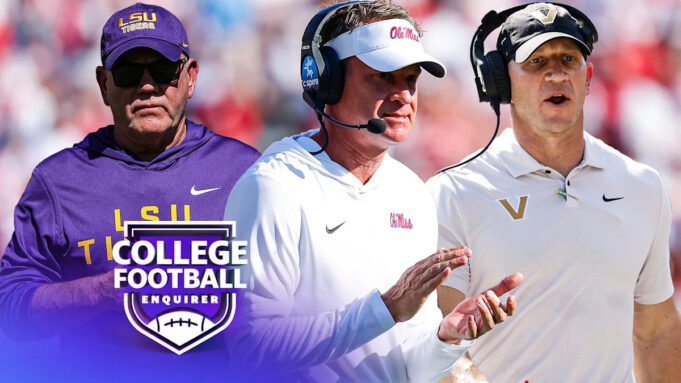 Mais tarde, os rapazes consideram quais esportes poderiam acelerar o carrossel de treinamento desta semana. Que impacto o 8º Ole Miss no 13º Oklahoma poderia ter na gestão de Lane Kiffin e Brent Venables na próxima temporada? O jogo de sábado entre #20 LSU e Auburn será o jogo final para Brian Kelly e Hugh Freeze?