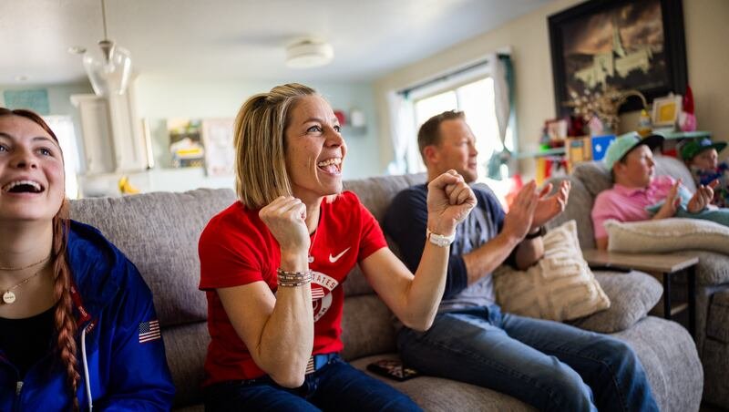 Medalha de prata olímpica na competição de esqueleto feminino Noelle Picus Pace e sua família assistem à competição de esqueleto feminino nas Olimpíadas de Milão Cortina de 2026 em sua casa em Saratoga Springs no sábado, 14 de fevereiro de 2026. Tess Crowley, Deseret News