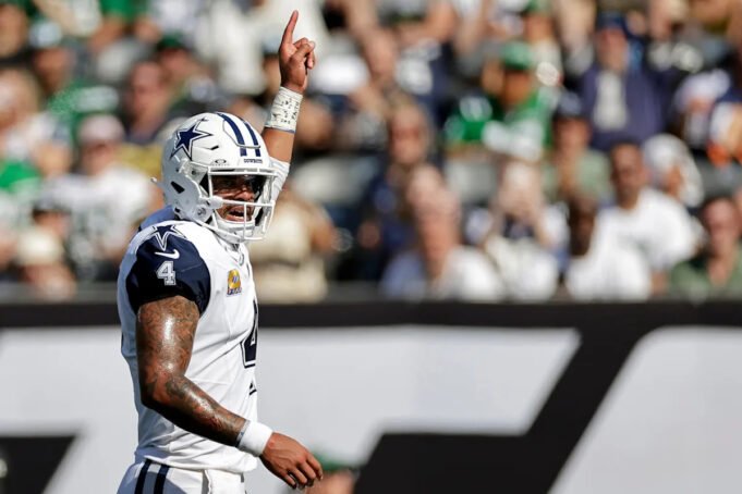 Atualmente, seu 2-2-1 Cowboys está em quarto lugar na NFL com 30,2 pontos por jogo. Ele marcou 40 no empate com o Green Bay Packers.