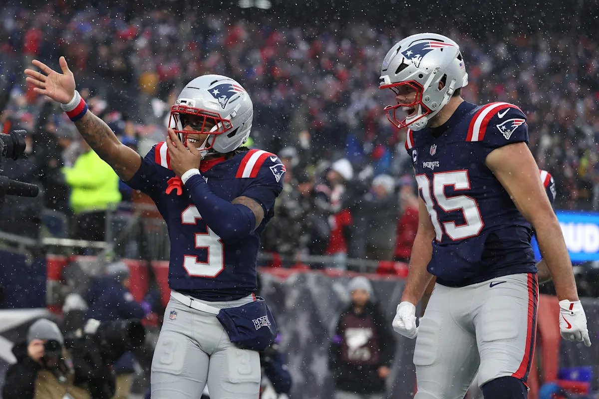 O wide receiver do New England Patriots, Demario Douglas, acertou depois de marcar um touchdown no início do confronto da rodada divisionária com o Houston Texans na tarde de domingo. Isso colocou os Patriots à frente por 7-0 no Gillette Stadium.