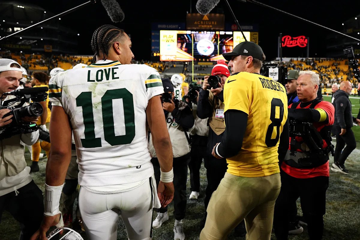Rodgers parou por alguns segundos antes de assinar uma camisa para o quarterback do Green Bay Packers, Jordan Love. Depois disso, houve decepção em seu rosto Steelers perdem para Packers 35-25Mas isso não atrasará a troca das camisas do antecessor pelo sucessor.