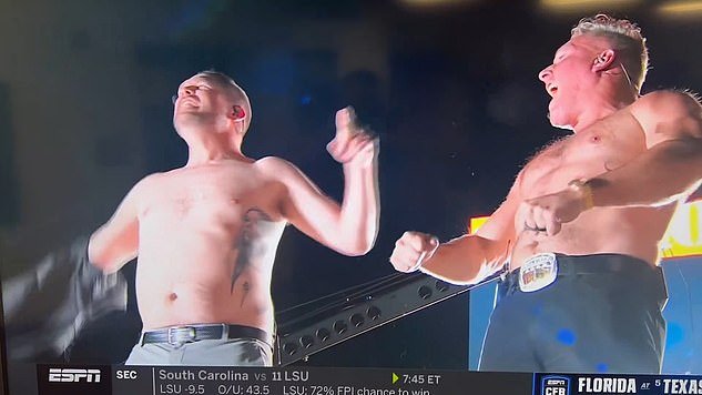 No entanto, não parou por aí. McAfee tirou a camisa e Lanning imediatamente fez o mesmo, para alegria da multidão presente.