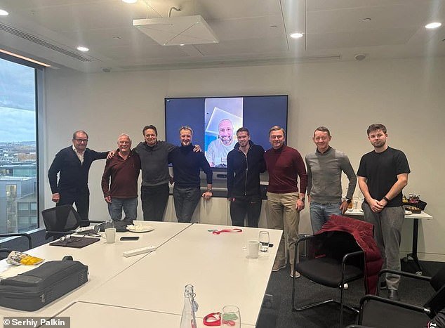 Uma foto compartilhada nas redes sociais por Serhiy Palkin mostra Mudric com o técnico de futebol croata Igor Jovicevic e vários cineastas.