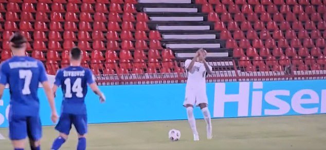 Um clipe postado nas mídias sociais foi mostrado para 27 anos -Konsa, que mostrou levantar as mãos com os olhos enquanto seguia a frente com a bola porque a luz vermelha era direcionada a ele.