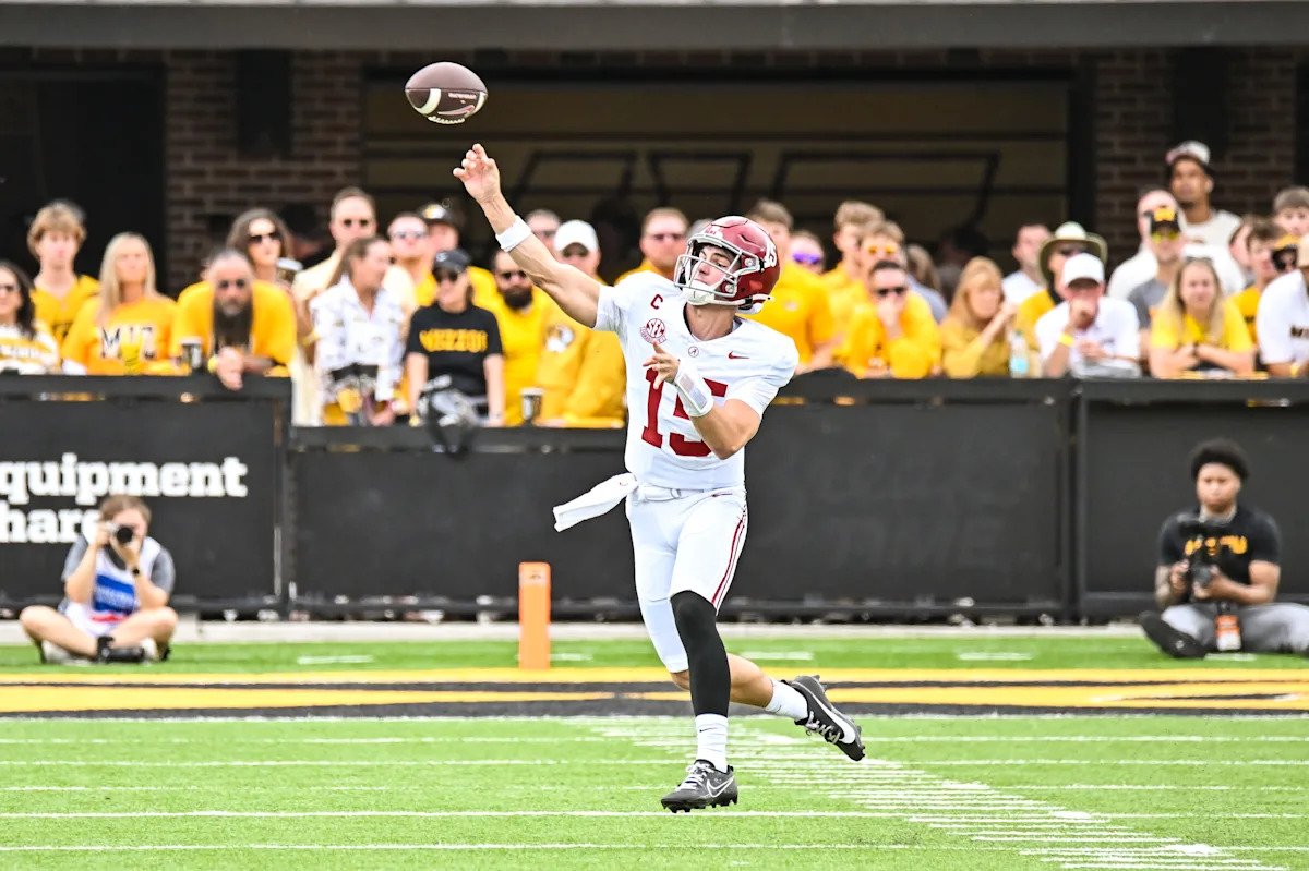 As estatísticas de Simpson contra o Missouri não saltam da página; Ele fez 23 de 31 arremessos de 200 jardas e três touchdowns. Mas você só precisa assistir ao jogo decisivo do Alabama para ver o quão bom Simpson foi na semana 7.