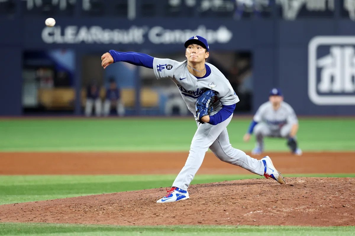 Assim como no jogo 2 do NLCS contra o Milwaukee Brewers, Yamamoto não precisou de ajuda no bullpen no sábado. Este jogo era seu para terminar e, na nona entrada, ele passaria pelo meio da escalação dos Blue Jays para realizá-lo.
