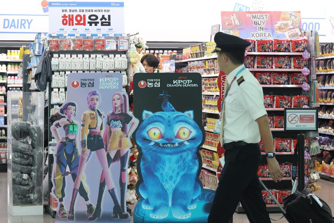 Food Products com personagens do filme de animação Global Hit Kpop Demon Hunters são exibidos em uma loja no Aeroporto Internacional de Incheon, na Coréia do Sul, em 31 de agosto.