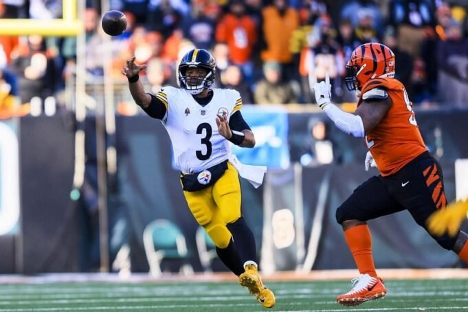Russell Wilson completou 29 de 38 passes para 414 jardas e três touchdowns para levar o visitante Pittsburgh Steelers à vitória por 44 a 38 nos pênaltis sobre o Cincinnati Bengals no domingo.