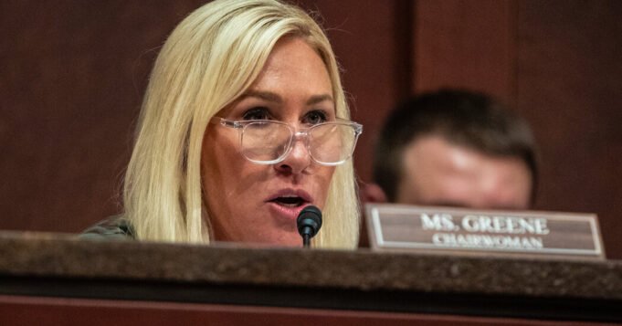 Fora de Atlanta na terça -feira, o representante da Geórgia, Marjuri Taylor Green, estava em um caos rápido na terça -feira, quando os policiais removeram à força vários manifestantes.