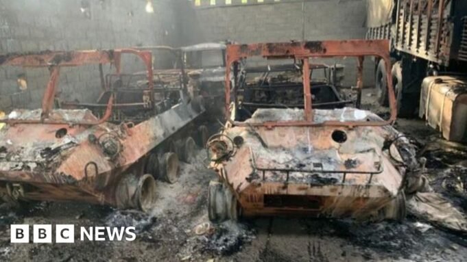 A BBC verificou cinco locais de ataque, incluindo um complexo, um porto e um aeroporto. As fotos mostram o Fuerte Tuna em chamas, com enormes chamas visíveis a quilômetros de distância.
