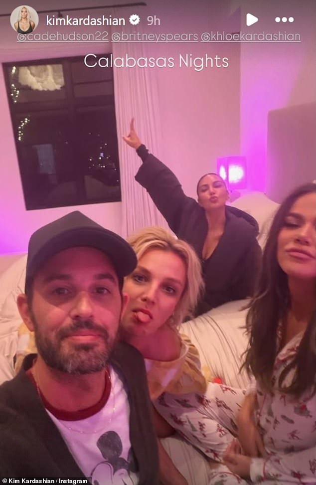 Kim Kardashian surpreendeu seus fãs ao revelar que ela e sua irmã Khloe deram uma festa do pijama com Britney Spears e Cade Hudson, amigo próximo de Britney Spears.