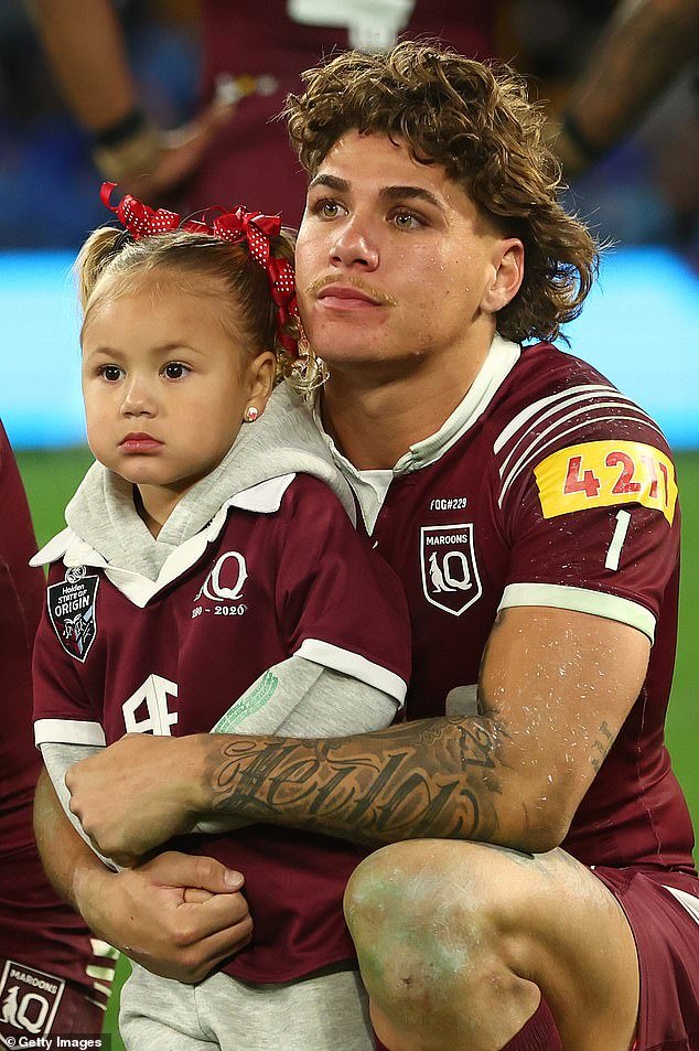 O zagueiro do Broncos, Reece Walsh, é dedicado a sua filha Lila (foto juntos após o Origin Game 3 em julho de 2024). No entanto, seu relacionamento com sua própria mãe é tenso