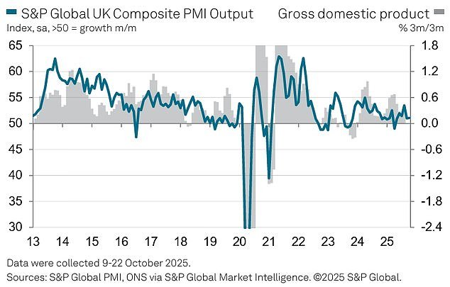 O estudo destacou uma melhoria modesta na actividade no sector dos serviços, mas as empresas inquiridas afirmaram que ainda era “monótona” devido ao fraco sentimento dos consumidores e à cautela empresarial antes do Orçamento do Outono.
