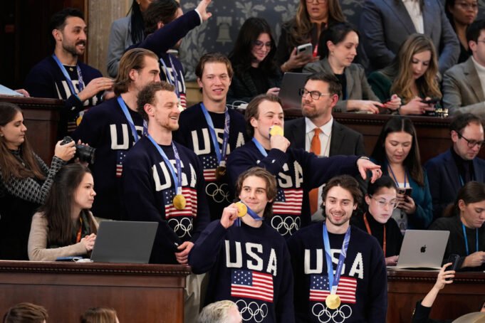 Tkachuk e membros da equipe olímpica masculina de hóquei estão entusiasmados desde a vitória na prorrogação sobre o Canadá em 22 de fevereiro, dando aos Estados Unidos sua primeira medalha de ouro no hóquei masculino desde 1980.
