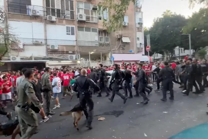 A polícia holandesa, que prendeu mais de 60 pessoas, disse que gangues anti-Israel em scooters perseguiram e espancaram torcedores do Maccabi, enquanto apoiadores do Maccabi queimaram uma bandeira palestina, derrubaram outra bandeira e destruíram um táxi.