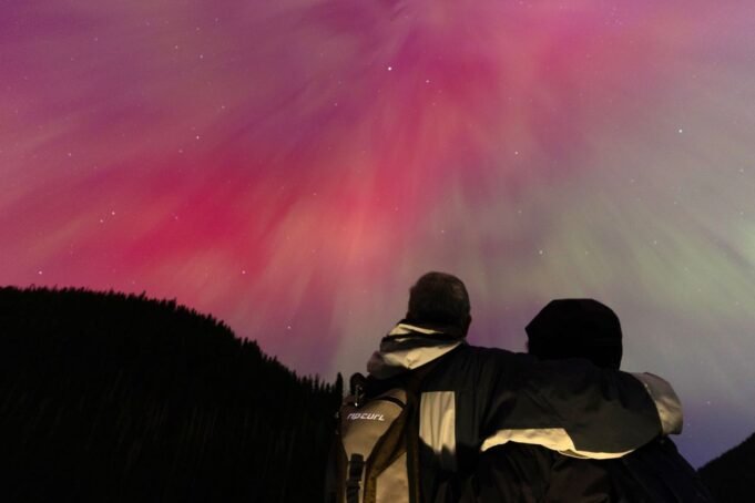 Grandes áreas dos Estados Unidos poderão ver aurora boreal colorida na noite de segunda-feira, em meio à maior tempestade de radiação solar em mais de duas décadas. (Imagens Getty)