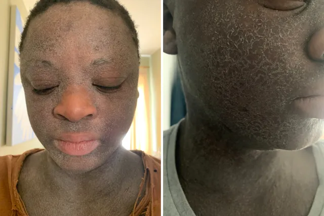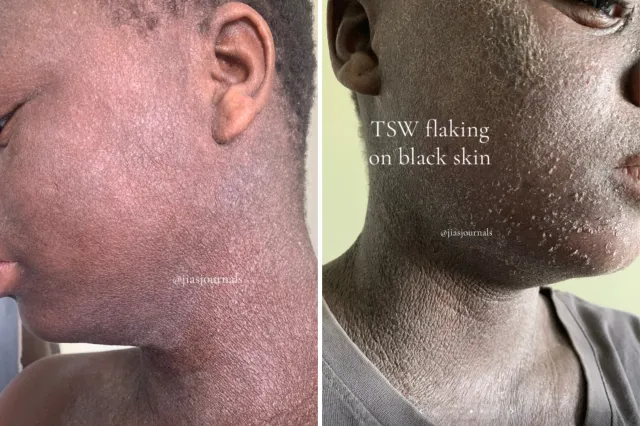 “Uma das coisas mais preocupantes é que o TSW se espalha para áreas onde nunca tive problemas de pele antes ou onde não apliquei creme esteróide”, diz Patrick. “Também experimentei descamação constante da pele do rosto, uma experiência muito dolorosa.