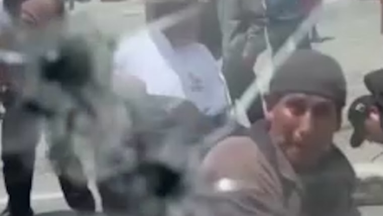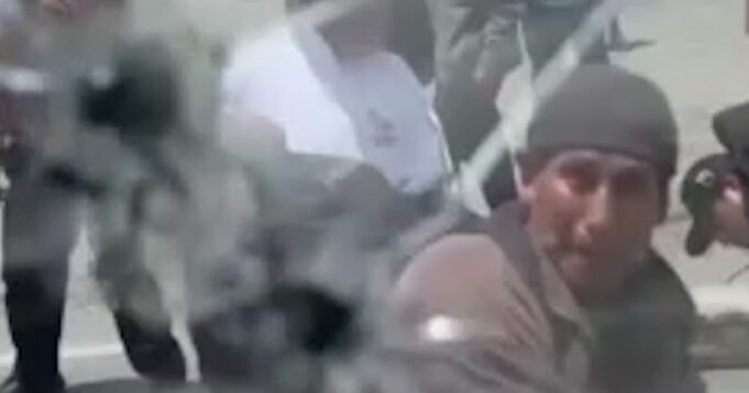A multidão atacou o carro com a pedra do presidente do Equador