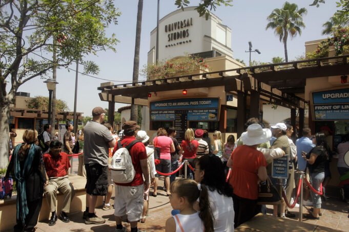 nos estúdios universais Não é preciso fazer uma teleconferência sobre os lucros das empresas para saber que o turismo está em queda entre os visitantes internacionais do parque temático de Hollywood do trabalhador de serviços de alimentação Sam Nassar, perto de Los Angeles. Ele pode ver isso dentro do parque – e em sua agenda e contracheque.