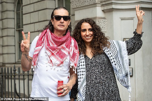 Os cofundadores da Ação Palestina, Richard Barnard e Huda Ammori, retratados em 2023 – A Sra. Ammori venceu a última etapa em uma batalha judicial para desafiar a proibição do grupo como organização terrorista