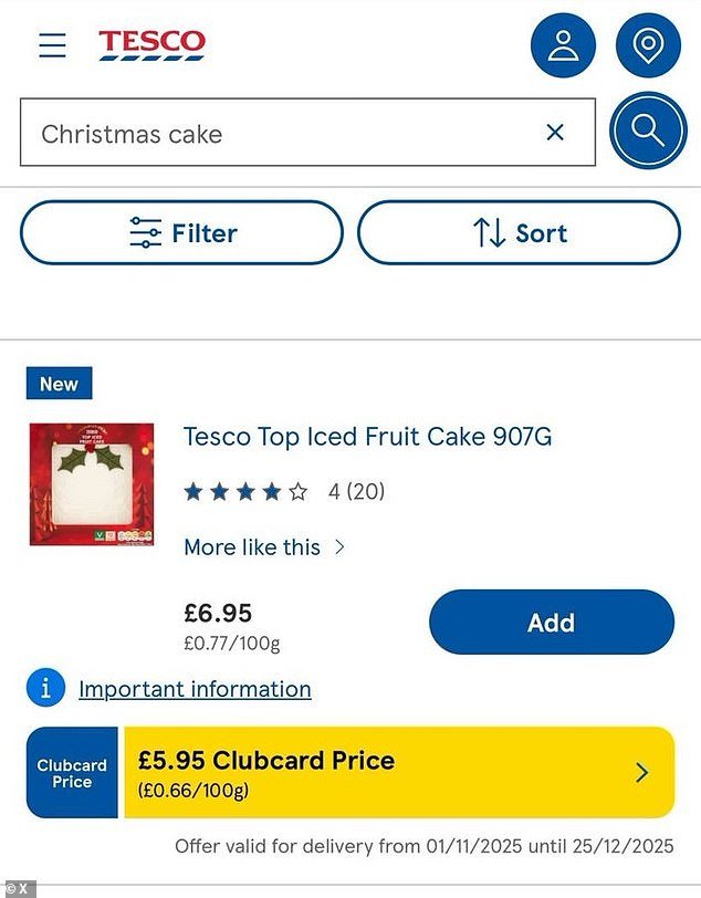 A Tesco irritou os compradores ao rotular um bolo clássico de Natal como “bolo de frutas”.