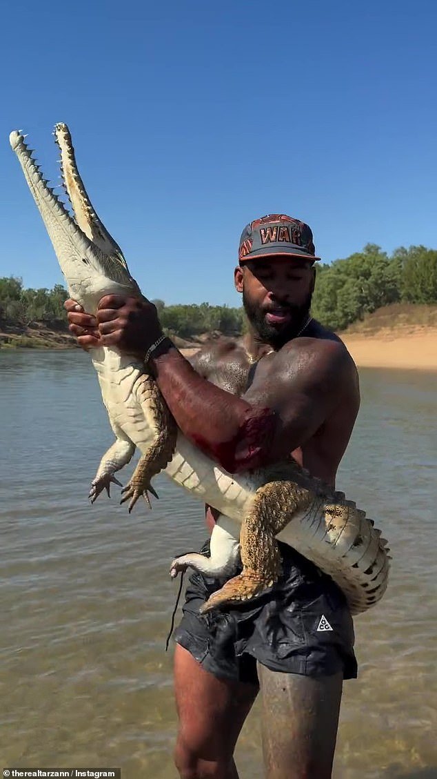 Mike Holston, conhecido como Real Tarzan Online, compartilhou -se para lutar por crocodilos de água doce. InstagramO Cabo, a cerca de 520 km ao norte de Cairns, foi baleado no rio Lockhart em York, supostamente no início deste mês.