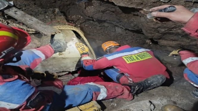 Deslizamento de terra mata moradores de um antigo prédio de fábrica em Antapani Bandung
