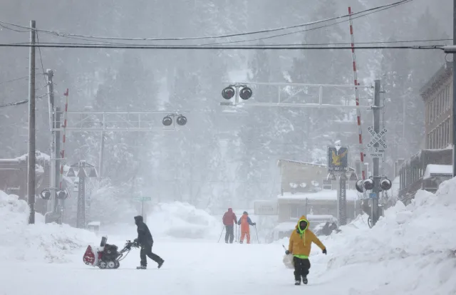 Colinas do condado de Mono, As cidades de Lee Vining, Colville, Mammoth Lakes e Bridgeport estão sob alerta de inverno até as 8h PST, com mais de 30 centímetros de neve se acumulando em altitudes mais elevadas e viagens em passagens importantes severamente afetadas. O NWS disse: “Ventos fortes podem arrancar galhos de árvores”.
