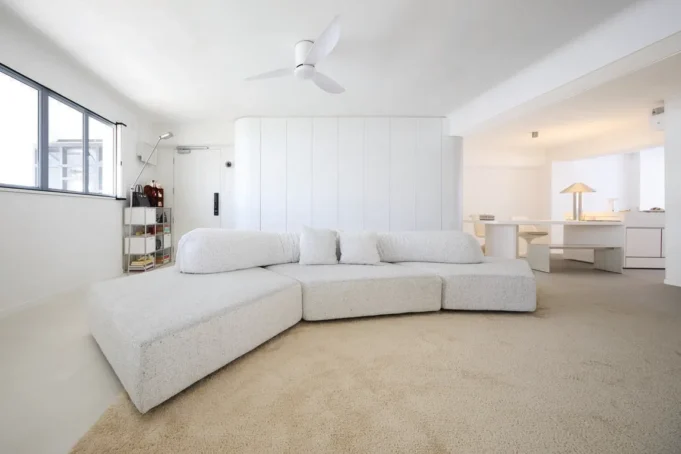 O design silencioso e minimalista da unidade de 947 pés quadrados lembra o estilo da estrela americana de reality shows Kim Kardashian e sua família. “Quero viver uma vida minimalista. Não quero muitas coisas. Menos luxo, mais descolado.”