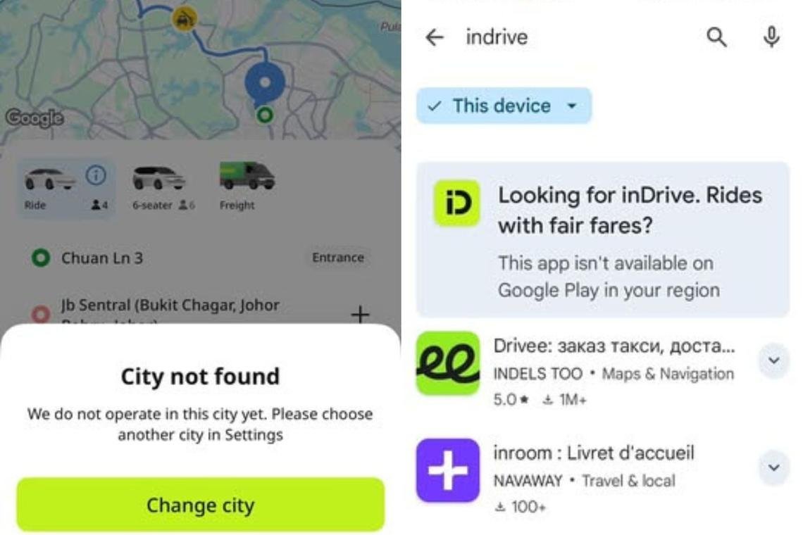 Quando os usuários agora tentam solicitar uma viagem com um local de Cingapura, um pop-up mostra que o Indrive não está disponível aqui e o usuário não pode prosseguir, disse Sun.
