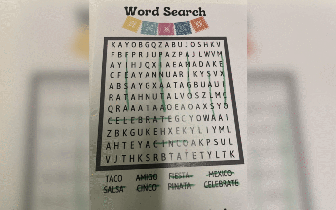 O termo de pesquisa apresenta oito frases diferentes: taco, amigo, fiesta, méxico, salsa, cinco, piñata e celebração. No entanto, Greer estava lutando para encontrar a palavra “taco” no labirinto de letras – e ele não está sozinho.