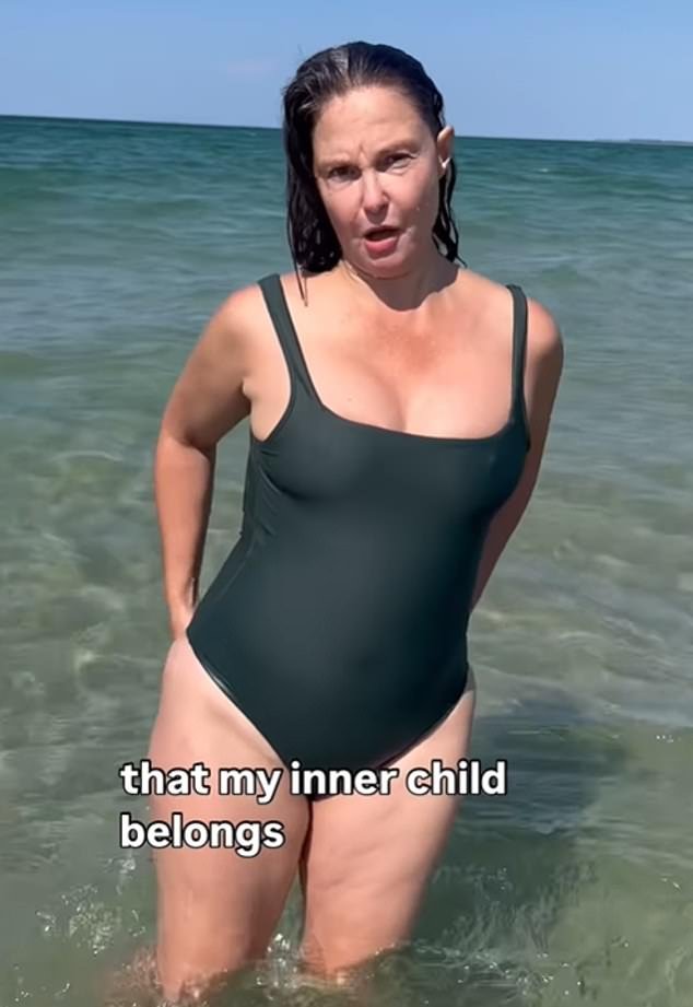 ‘Se, como adulto, fico preso ao que os outros pensam de mim, ignoro, negligencio e abandono a minha própria ternura. Hoje ele está fora da discussão. No mar para mim, para mergulhar e brincar! Com amor, Ashley.