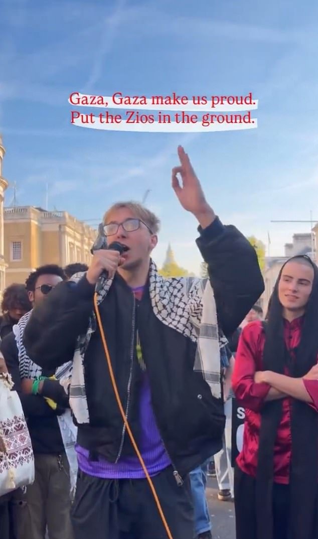 O jovem disse que o canto foi “preparado em Oxford” e disse que fazia parte de uma “determinada e grande resistência” aos acontecimentos ali. Gaza,