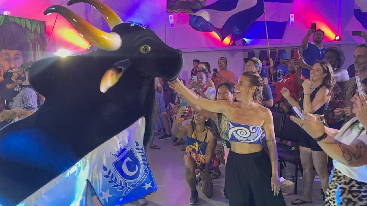 Caprichoso e Garantido Parintins Patrick Marques, g1 AM recebe a expedição Banzeiro da Esperança, que percorre a Amazônia até Belém para a Conferência do Clima da ONU (COP30), com parada em Parintins no primeiro dia do programa. No início da noite, a comitiva foi recebida com apresentação especial dos bois-bumbás Caprichoso e Garantido, que divulgaram um manifesto em defesa da conservação das florestas ao longo do Rio Amazonas. O show reuniu integrantes da expedição, que desembarcaram no centro cultural da cidade e acompanharam coreografias, músicas e símbolos representativos da cultura da festa de Parintin. A exposição marcou o primeiro momento cultural do passeio, reunindo lideranças comunitárias, organizações da sociedade civil e representantes de movimentos sociais. 📲 Entre no canal g1 AM no WhatsApp Entre os participantes, a ucraniana Vandana Hart, uma das personalidades estrangeiras que integram o grupo, se inspirou ao ver a expressão artística. Ele, que trabalha com dança pelo mundo, disse nunca ter visto nada parecido. “Meu coração explodiu. Nunca senti tanta emoção, tanta cor. Senti as Amazonas falando através delas, através da dança. Tenho uma série de danças e nunca vi nada parecido. Isso me emocionou muito”, disse Hart. O coração da bandana ucraniana comoveu-se e dançou com os caprichos do touro durante a expedição do Banjeiro da Esperança por Parintins. Patrick Marques, fundador e organizador do g1 AM Virada Sustentável, Andre Palhano, um dos idealizadores do Banjeiro da Esperanza, também destacaram o poder simbólico da apresentação. “Essa apresentação não só impressionou, como hipnotizou. Talvez para o nosso desenvolvimento sustentável, para a conservação da Amazônia, precisemos também impressionar as pessoas por esse orgulho de pertencer a esse lugar que sentimos. Inspira todas as lideranças que estão aqui”, disse Palhano. O prefeito de Parintins, Mateus Assayag, deu as boas-vindas à comitiva e reforçou a importância da mensagem ambiental da vaca. “A Capriçoso e a Garantido têm ambas esta bandeira da consciência, da educação ambiental e da sustentabilidade. Esta luta faz parte da sua essência e inspira-nos a todos a procurar um mundo mais sustentável e com melhor qualidade de vida”, afirmou. Uma parada em Parintins é um trecho da viagem. Nos próximos dias, a campanha continuará com uma programação que inclui rodas de diálogo, oficinas e debates sobre justiça climática e desenvolvimento sustentável na Amazônia. Apresentação do Boi Capriccioso avança para COP30 do Banjeiro da Esperança