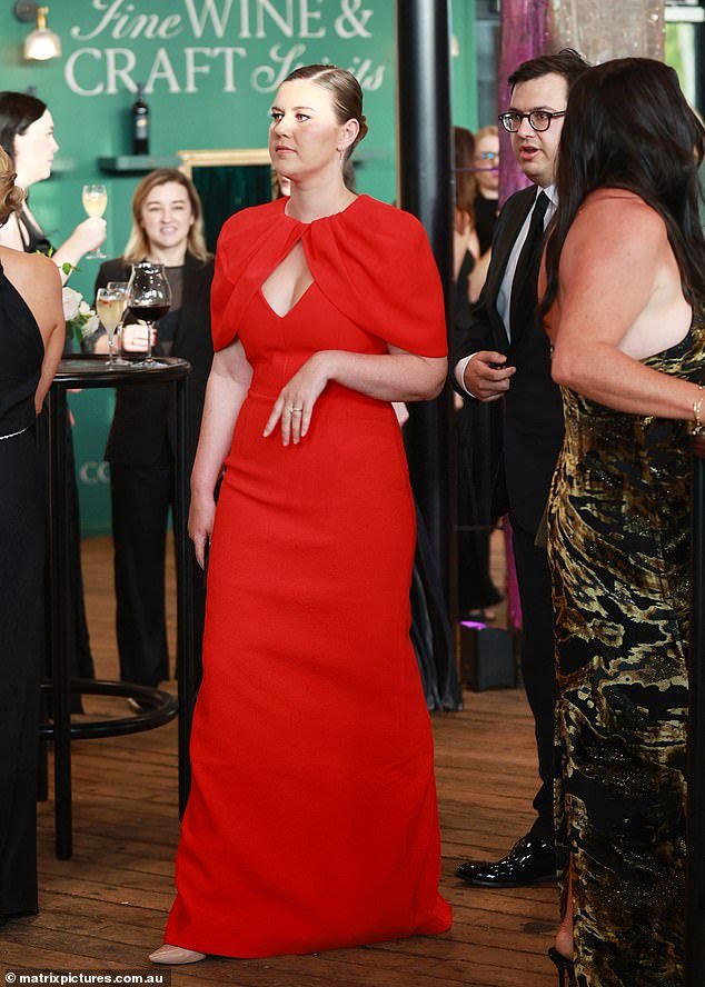 Alice Knowles, 33, também seguiu o tema vermelho para a noite