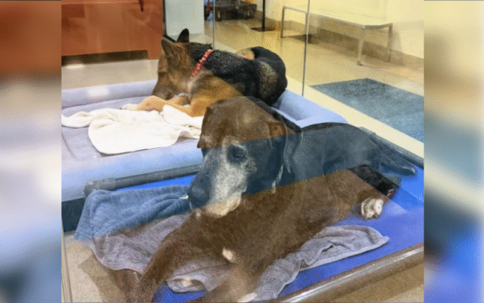 Jagger, um macho misturado com labrador retriever, e Maya, uma pastora alemã, chegaram ao Miami Dade Animal Shelter na quinta-feira, 19 de fevereiro, após uma tragédia familiar que destruiu a vida que eles conheciam.