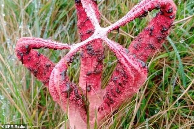 O fungo, oficialmente conhecido como Clathrus archeri, é raro, mas pode ser encontrado em florestas, cidades e jardins entre os meses de verão e outono na Grã-Bretanha.