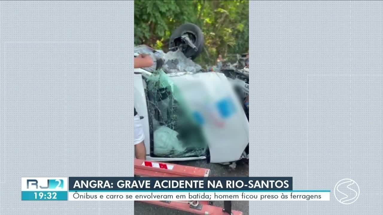 Um acidente entre um carro e um ônibus foi sábado, 23 de agosto, no BR -101 (Rio Santos) no sábado, 23 de agosto, 23 de agosto, um homem de Angra Dos Rice (RJ) ficou gravemente ferido. O acidente ocorreu a 474 km em direção à pista em direção a São Paulo às 17h.