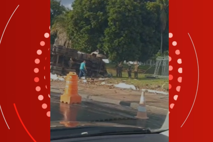 Um caminhão bateu no muro do 9º Batalhão de Engenharia de Construção e em um semáforo no sábado (31). O carro capotou no gramado de uma unidade militar após o impacto. Outros dois veículos se envolveram no acidente. A causa do acidente está sendo investigada. O incidente ainda está em andamento. Este relatório está sendo atualizado. Caminhão bateu em muro e semáforo e caiu dentro do Batalhão do Exército de Cuiabá Arquivo Pessoal