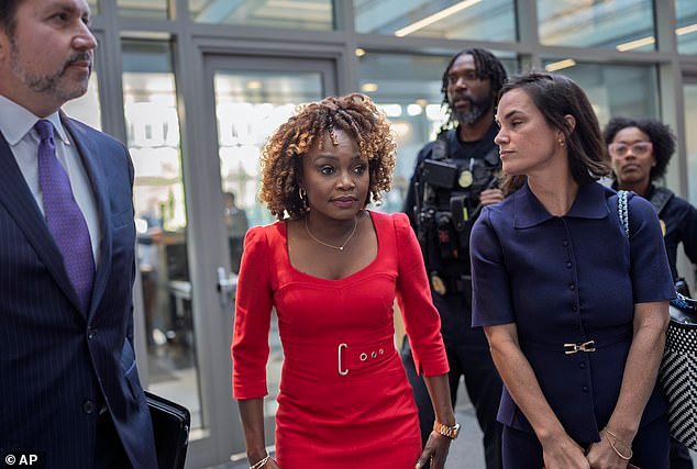 A ex-secretária de imprensa da Casa Branca Karine Jean-Pierre foi fotografada lançando uma turnê de livro em Nova York na segunda-feira