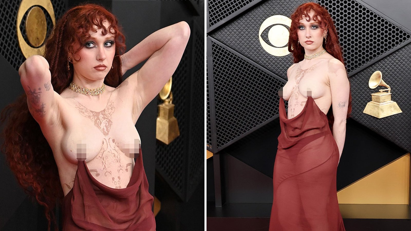 Mas não foi o Pink Pony Club Capela Ródano Definitivamente causou polêmica no Grammy… ela foi vista de topless enquanto caminhava no tapete vermelho!