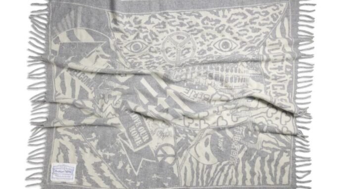 Cobertores cinza/cru não são baratos. O preço é $ 260. Aries disse que o cobertor mede cerca de 1,20 x 1,20 metro e é feito na Itália com uma mistura de 80% de lã e 20% de poliamida.