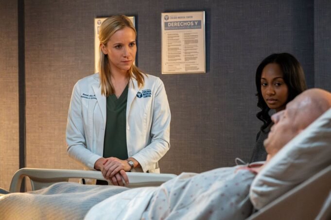 Chicago Med – Episódio 1108 de “Triple Threat” – Na foto: (à esquerda) Jessie Schram como Dra. Hannah Asher, Tetona Jackson como Esme Lockhart, Zach Appelman como Jeremy Lockhart, Merrin Dungey como Dra.