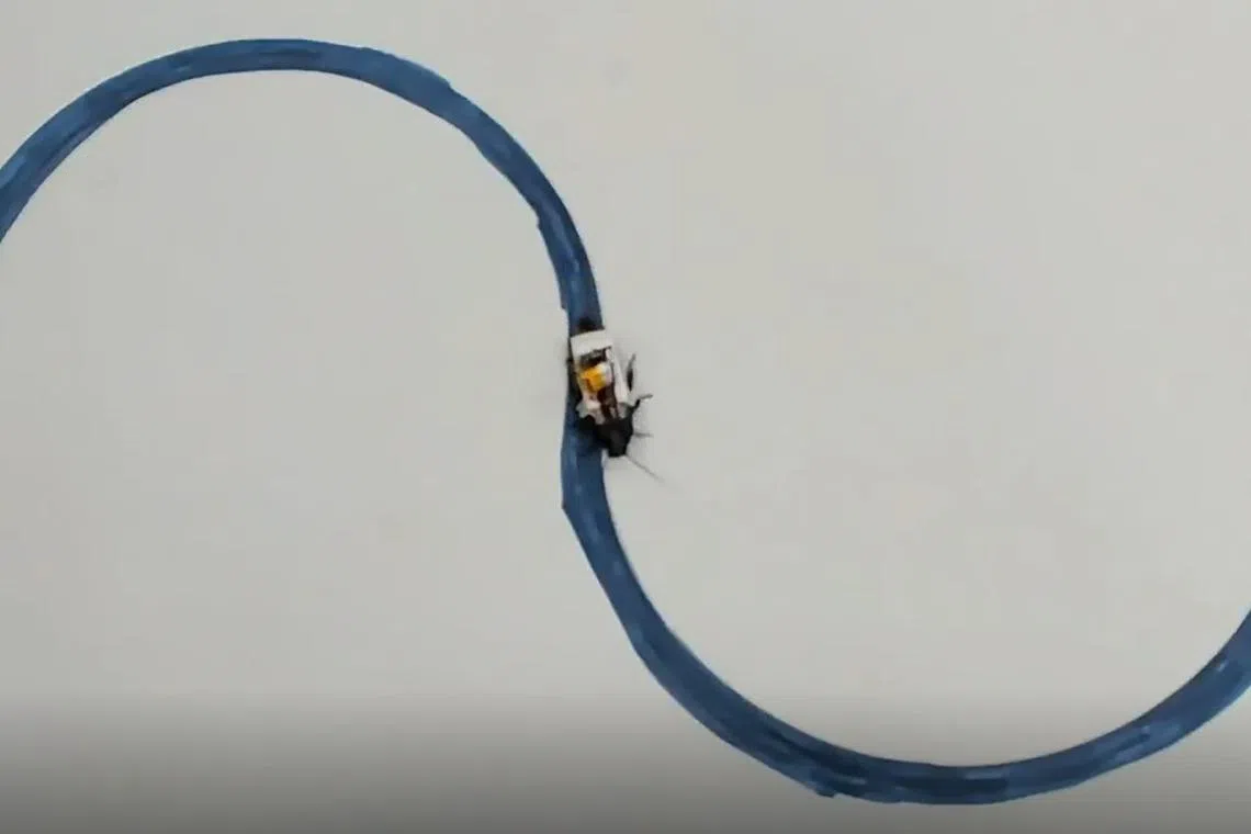 “Em testes de laboratório, os insetos híbridos demonstraram reviravoltas acentuadas de mais de 70 graus e redução de velocidade de até 68 % no comando”.