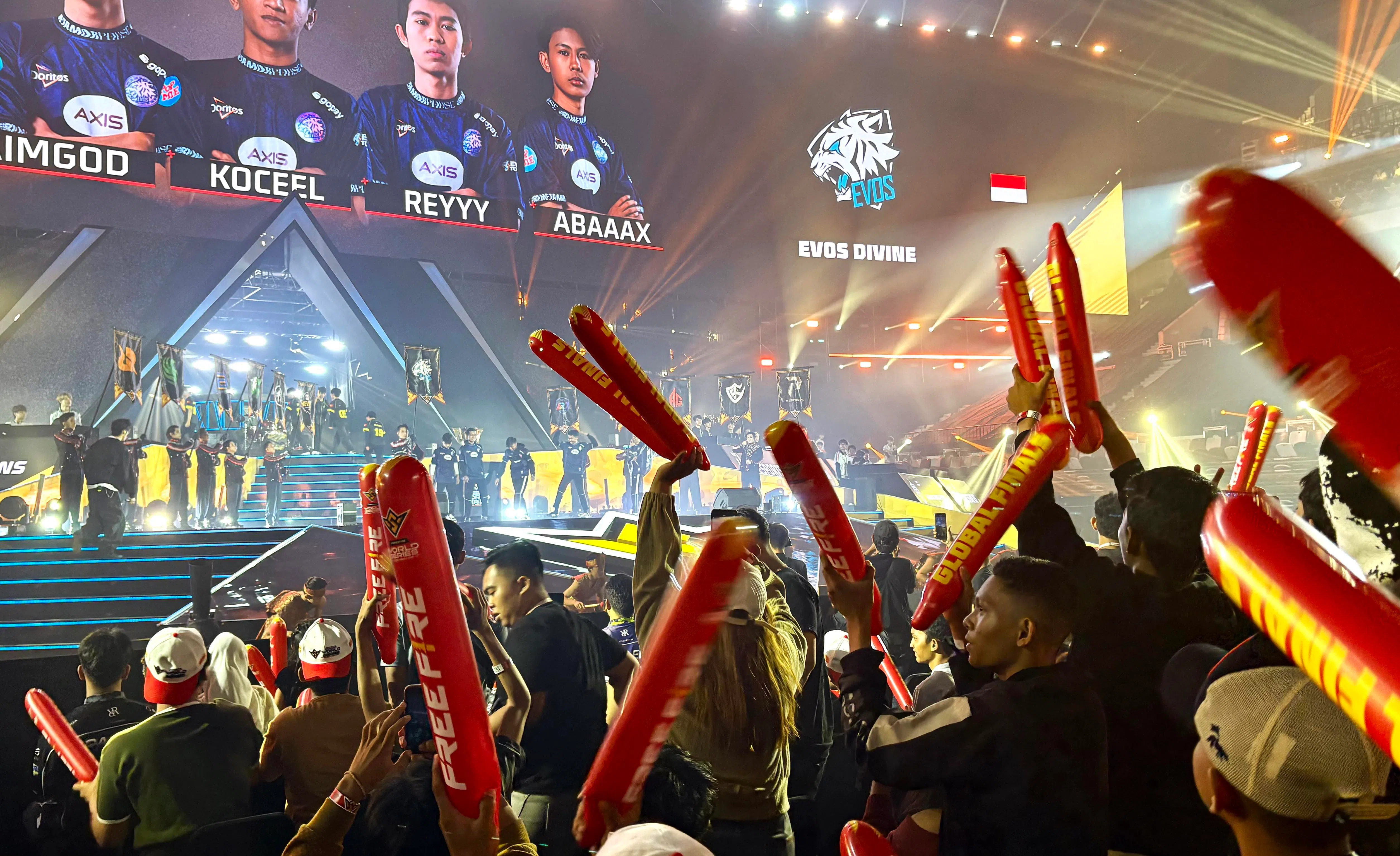 Fãs se reuniram na Arena da Indonésia para apoiar a equipe de esportes eletrônicos.