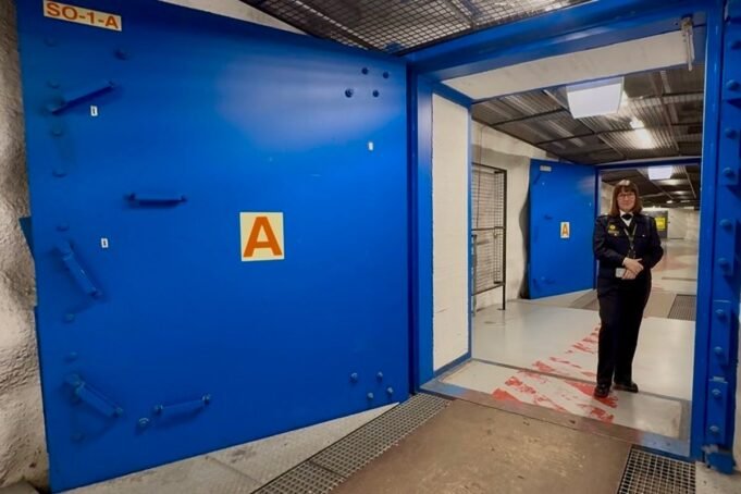Em um urgenteDepois de passar por esta entrada dupla, os moradores locais chegam a uma câmara de descontaminação selada com torneiras e chuveiros para lavar as toxinas das roupas, antes de seguirem para o núcleo. o bunker Corte na rocha a 25 metros de profundidade abaixo Finlândiasua capital.
